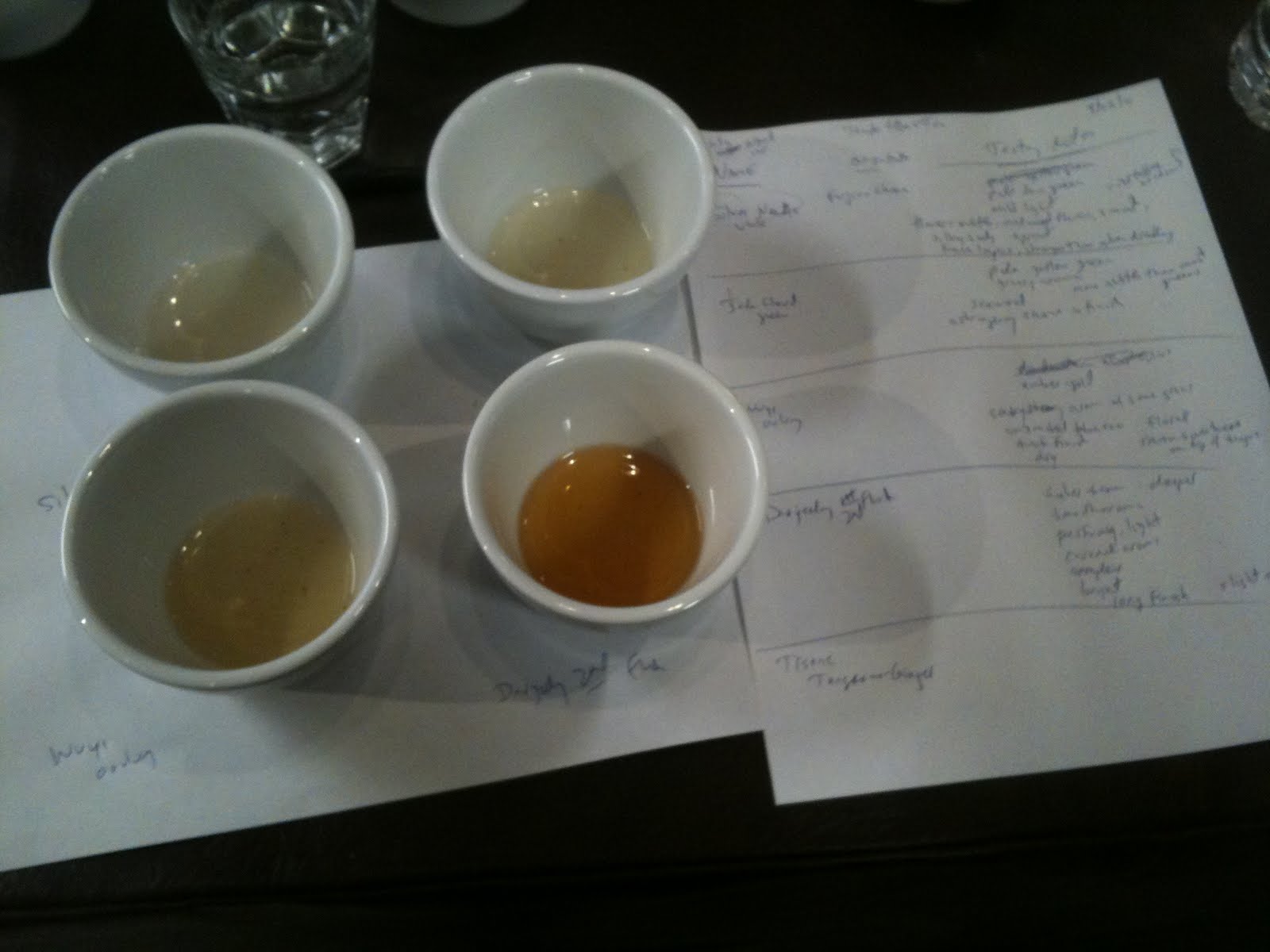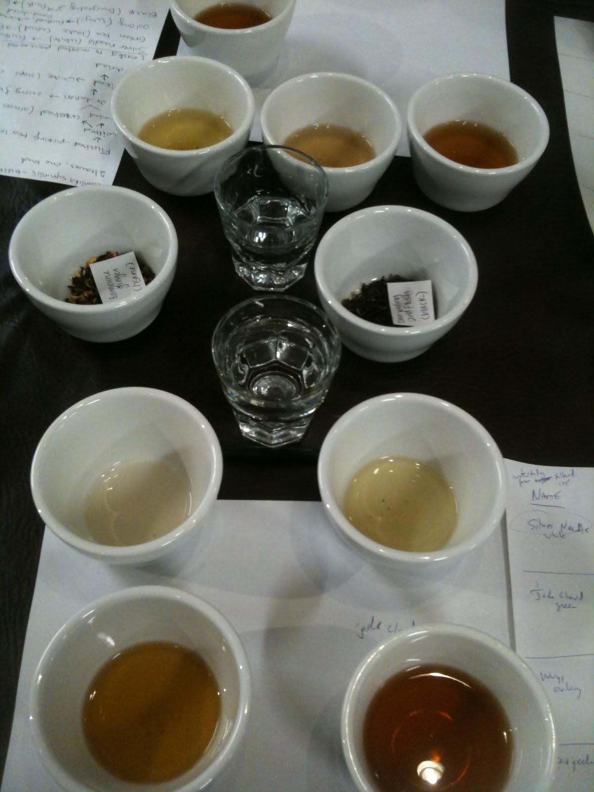 The reactions to the teas were as varied as the tasters themselves. The Wuyi oolong was described as “unsmoked tobacco” but also contrastingly as “floral, dry, raisin-like sweetness on the tip of the tongue”. The Darjeeling 2nd Flush black tea was “dark amber, smooth and caramel-like” but also “perfume-y, complex and bright”.